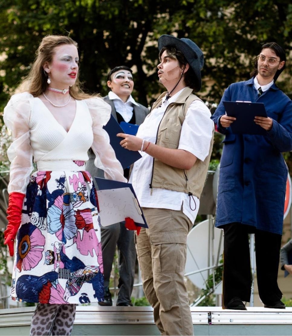 In der Rolle von Historiker:innen und Zeitreisenden stellen die Performer:innen Fragen nach der